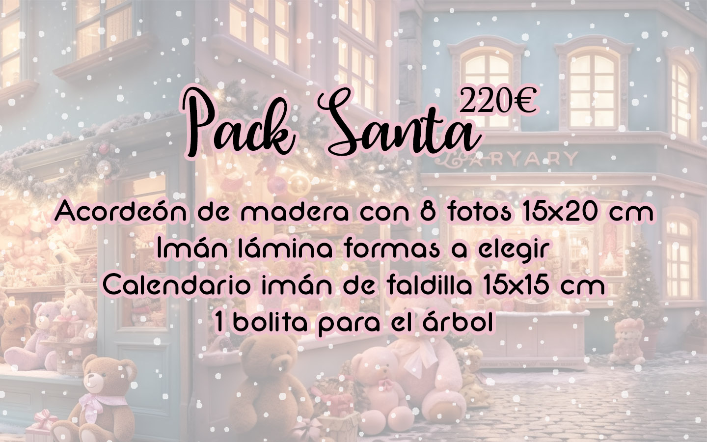 Un lugar mágico en colores pastel con olor a ilusión, dulces, juguetes y lleno de lucecitas que recrearán un ambiente único, especial y navideño.